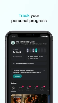 Εμβαθύνετε στην καρδιά της γνώσης και της εταιρικής επικοινωνίας. Αποκτήστε άμεση πρόσβαση σε ουσιαστικό περιεχόμενο που αφορά τη θέση εργασίας σας και παραμείνετε πάντα ενήμεροι για τα τελευταία νέα και τις εξελίξεις εντός της εταιρείας σας. Το Atiom σας δίνει τη δυνατότητα να παρακολουθείτε λεπτομερώς την προσωπική σας πρόοδο και την απόδοσή σας, θέτοντας και επιτυγχάνοντας καθημερινούς στόχους, ενώ παράλληλα ανταμείβεστε με πόντους που αναγνωρίζουν την προσπάθειά σας.