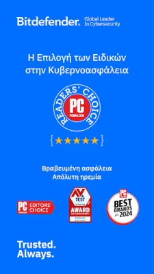 Το Bitdefender Mobile Security για Android αποτελεί την απόλυτη ασπίδα προστασίας για την ψηφιακή σας ζωή. Με επτά βραβεία «Καλύτερο Προϊόν Ασφαλείας για Android» από την AV-Test, αναγνωρίζεται παγκοσμίως ως η κορυφαία επιλογή ενάντια στις συνεχώς εξελισσόμενες απειλές. Προσφέρει μια απαράμιλλη εμπειρία ασφάλειας, διασφαλίζοντας ότι η Android συσκευή σας παραμένει απρόσβλητη από ιούς, κακόβουλο λογισμικό και ransomware, χάρη στον εντυπωσιακό της ρυθμό ανίχνευσης 100%. Η καινοτομία συναντά την τεχνογνωσία, προσφέροντας ηρεμία σε έναν όλο και πιο επικίνδυνο ψηφιακό κόσμο.
