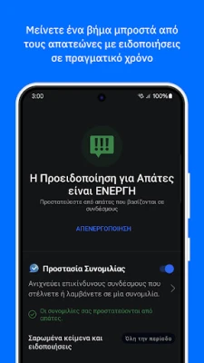 Η προστασία επεκτείνεται πολύ πέρα από την απλή ανίχνευση κακόβουλου λογισμικού. Το Bitdefender Mobile Security φιλτράρει ενεργά επικίνδυνους ιστότοπους, μπλοκάροντας συνδέσμους phishing και ιστοσελίδες απάτης πριν καν φτάσουν σε εσάς. Επιπλέον, η προηγμένη λειτουργία «Ειδοποίηση Απάτης» σαρώνει έξυπνα ύποπτους συνδέσμους σε μηνύματα κειμένου και εφαρμογές συνομιλίας, προστατεύοντάς σας από στοχευμένες επιθέσεις. Η λειτουργία «Call Blocking» προσφέρει ασύγκριτη άμυνα έναντι ανεπιθύμητων κλήσεων, αποκλείοντας αυτόματα γνωστούς αριθμούς spam και απάτης, ενώ παράλληλα ανιχνεύει ύποπτες κλήσεις σε πραγματικό χρόνο και σας επιτρέπει να διαμορφώσετε τις δικές σας λίστες αποκλεισμού, ενισχυόμενη συνεχώς από την παγκόσμια κοινότητα χρηστών της Bitdefender. Παράλληλα, η Ανίχνευση Ανωμαλιών Εφαρμογών αναλύει τη συμπεριφορά τους και αποκλείει άμεσα κάθε απειλή.