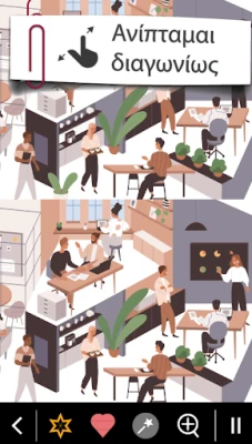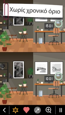 Ενισχύστε την οπτική σας οξύτητα και ακονίστε την προσοχή σας με μια συναρπαστική εμπειρία εύρεσης διαφορών. Αυτό το κλασικό παιχνίδι παζλ αναδημιουργείται για να προσφέρει ατελείωτες ώρες διασκέδασης, ενώ παράλληλα εξασκεί τις δεξιότητές σας στην παρατήρηση και τη συγκέντρωση. Προκαλέστε τον εαυτό σας να ανακαλύψει τις ανεπαίσθητες αλλαγές ανάμεσα σε δύο σχεδόν πανομοιότυπες εικόνες, βυθιζόμενοι σε έναν κόσμο γεμάτο λεπτομέρεια και ανακάλυψη.