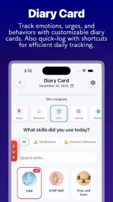 Το DBT Coach σας βοηθά να μεταμορφώσετε τη ζωή σας με αποδεδειγμένες δεξιότητες. Νιώστε πιο ελεγχόμενοι, αναπτύξτε ανθεκτικότητα και διαχειριστείτε τα συναισθήματά σας αποτελεσματικά. Η πιο ολοκληρωμένη εφαρμογή Διαλεκτικής Συμπεριφοράς, υποστηριζόμενη από κλινική έρευνα, προσφέρει μαθήματα βίντεο, οδηγούς δεξιοτήτων και υποστήριξη από AI για μετρήσιμη βελτίωση.