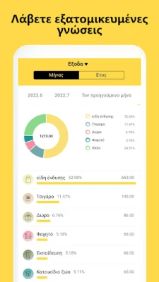 Η οθόνη με τις εικονογραφήσεις μετατρέπει τα νούμερα σε εύκολα κατανοητά διαγράμματα, αποκαλύπτοντας τα μοτίβα των δαπανών και των εσόδων σας με μια ματιά. Δείτε άμεσα το τρέχον υπόλοιπό σας και εντοπίστε πού ακριβώς πηγαίνουν τα χρήματά σας, επιτρέποντάς σας να λάβετε έξυπνες οικονομικές αποφάσεις. Επιπλέον, η εφαρμογή Προϋπολογισμός προσφέρει λεπτομερείς αναφορές για κάθε χρονική περίοδο και κατηγορία, δίνοντάς σας τη δυνατότητα να ταξινομήσετε τις πληροφορίες με τον τρόπο που σας εξυπηρετεί καλύτερα – είτε πρόκειται για ημερομηνία είτε για ποσό – για μια πραγματικά εξατομικευμένη ανάλυση.
