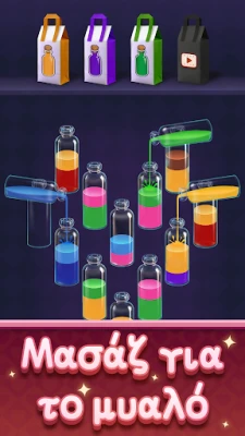 Ξεκλειδώστε το δυναμικό του μυαλού σας και βυθιστείτε σε έναν κόσμο γαλήνης με το Water Match. Αυτό το πρωτοποριακό παιχνίδι ταξινόμησης προσφέρει μια μοναδική προπόνηση για τη λογική, την παρατηρητικότητα και την ευφυΐα σας, μετατρέποντας την πρόκληση σε διασκέδαση. Αφήστε πίσω το άγχος της ημέρας καθώς χαλαρώνετε με τα απαλά ρεύματα των χρωμάτων, βρίσκοντας την ιδανική ισορροπία μεταξύ πνευματικής διέγερσης και ψυχικής ηρεμίας. Η οπτική αρμονία και οι ήχοι που χαϊδεύουν τις αισθήσεις σας, καθιστούν το Water Match το τέλειο καταφύγιο για κάθε στιγμή, ακόμα και πριν τον ύπνο, προσφέροντας ένα αίσθημα ολοκλήρωσης που διώχνει κάθε έγνοια. Είναι μια μαγευτική εμπειρία για όλη την οικογένεια, προσβάσιμη με απλά αγγίγματα.